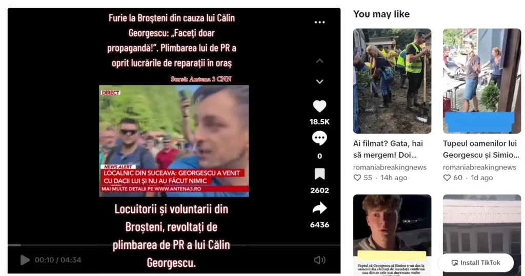 Ideea e că nu se aude nimic despre asta – câteva știri în media centrală, ceva pe la TV, dar oamenii nu ajung la discursurile astea. Dacă vreți să înțelegeți cum s-a ajuns de un om pe care nu îl știa nimeni a ajuns în turul 2 în iarnă, trebuie să investiți mai mult timp în cercetarea reală a zonelor de internet pe care se propagă astfel de mesaje populiste. O să spuneți: dom’le, e propagandă, se duc acolo și nu fac nimic real. De acord, dar de când politica înseamnă să faci lucruri reale pe care să le filmezi? Politica înseamnă imagine, mai ales în era TikTok”.