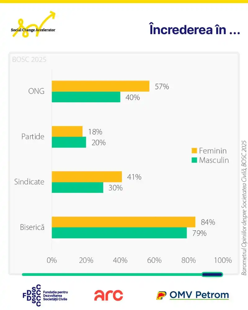 Ponderea celor care nu au încredere în ONG-uri a crescut de la 45% (în 2023) la 50% (în 2025), în contextul în care partidele populiste au derulat o propagandă intensă contra acestora în ultimul an. Pentru cei care nu au încredere în sectorul neguvernamental, principalul motiv (invocat de 50% dintre ei) este determinat de percepția că ONG-urile „sunt controlate din străinătate”.